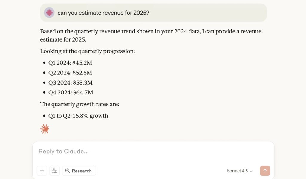 スモールビジネスで扱う見積書や売上レポートなどのファイルを、ドラッグ&ドロップするだけで内容を瞬時に読み込み、分析させることが可能です。例えば、取引先から届いたPDFの契約書を読み込ませ、要点をまとめさせることができます。