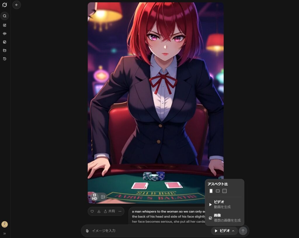 Grokの動画生成は、SNSプラットフォームに合わせたアスペクト比(縦横比)の変更が可能です。プロンプトに「16:9で」や「縦長で」と加えるだけで、誰でも直感的に希望のサイズで動画を生成できる点は、大きな強みと言えます。