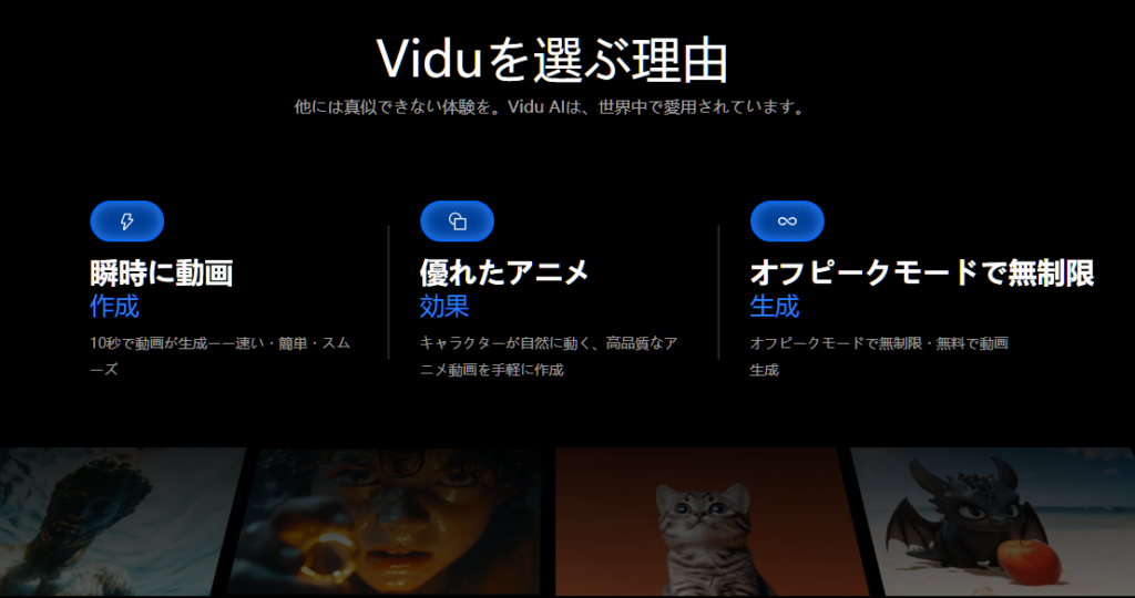 対してVidu Q2は、画像と動画をシームレスに扱える点で差別化されています。