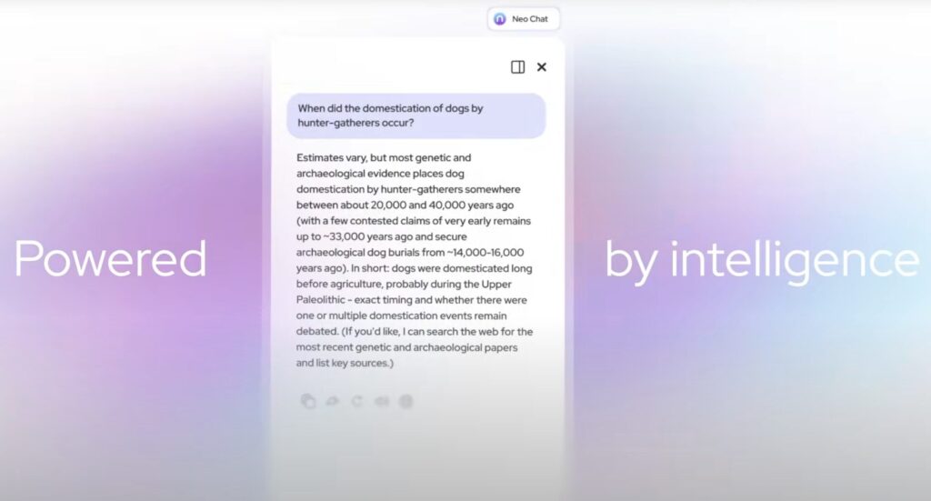 ChromeなどはAIが補助的な位置付けですが、Neoは設計そのものがAI中心です。手動での管理が必要な既存ブラウザとは異なり、文脈を理解して自動で整理を行う点が決定的な違いと言えます。