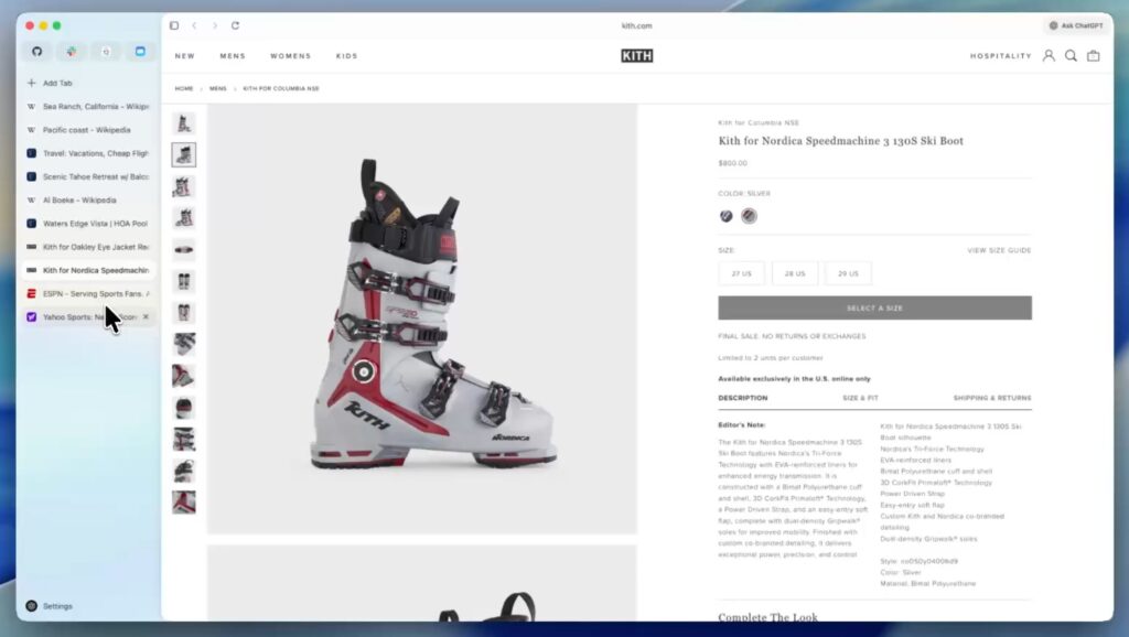 ChatGPT Atlasは、サイドバーに常時ChatGPTが表示される設計で、タブを切り替えずに要約やリサーチを依頼できます。少人数チームでも複雑な設定なしに使い始められるのが特徴です。