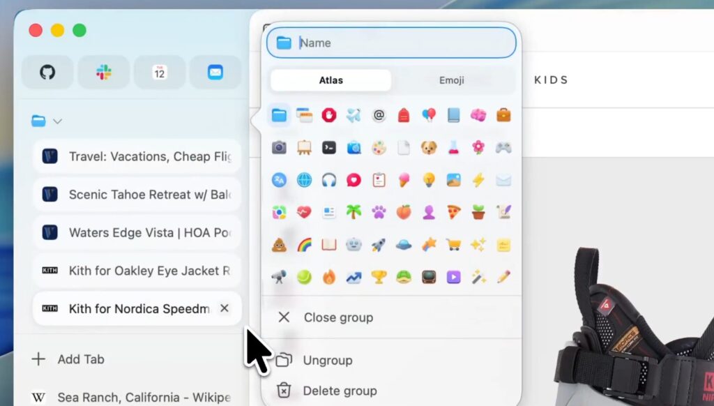 Atlasの強みは、閲覧ページやChatGPTとの会話をタブグループにまとめ、ブラウザメモリで自動記録する仕組みにあります。